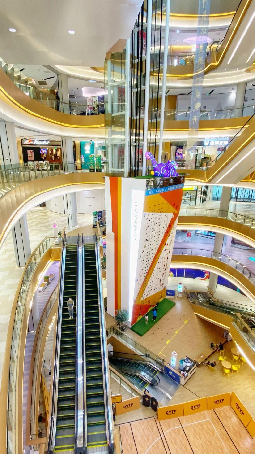 其中,位于购物中心内的攀岩墙由中国地质大学户外攀岩馆打造并运营,纵跨商场4层,总高度近20m,堪称华中地区商业体内最大的攀岩馆。