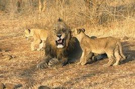 亚洲狮(学名:Panthera leo persica):体长1.6-2.5米,体重170-250千克,是现今只存活在印度的狮子亚种。它们曾一度分布在地中海至印度,占据了大部份的西南亚,故其名为“波斯亚种”。亚洲狮现今在野外的数量只有250-350只,都只生活在印度古吉拉特邦的吉尔森林国家公园。肉食动物,猎物主要是水鹿、花鹿、蓝牛羚、印度瞪羚、野猪及家畜。21世纪初,印度共和国国徽上的图案就是取材自阿育王石柱上的亚洲狮型。