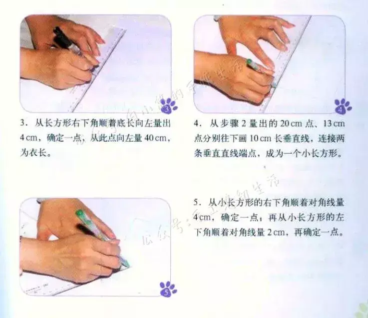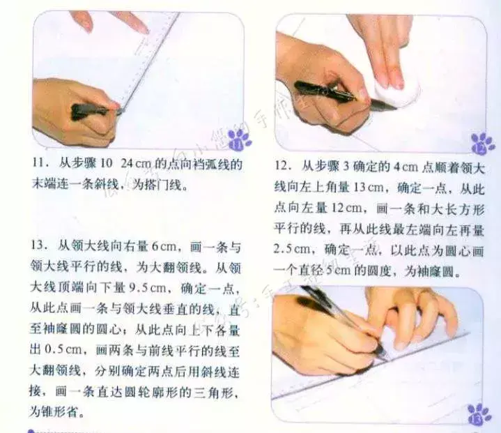 下面是原书上的裁剪图画法介绍和制作过程,