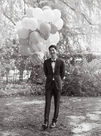 晚间在婚礼晚宴结束后,两人的经纪公司终于提供了小俩口婚礼现场照,以及先前赴美国拍摄的婚纱照。婚纱照以黑白的复古风格呈现,虽然没有华丽的场景,但光是宋慧乔盖头纱直视镜头,或是两人穿上复古西服和洋装的合照,都再再突显这对夫妻外貌的卓越,更让网友说:「不是真实,反而像是电影一样的画面。」