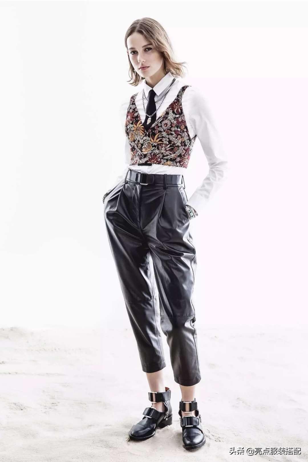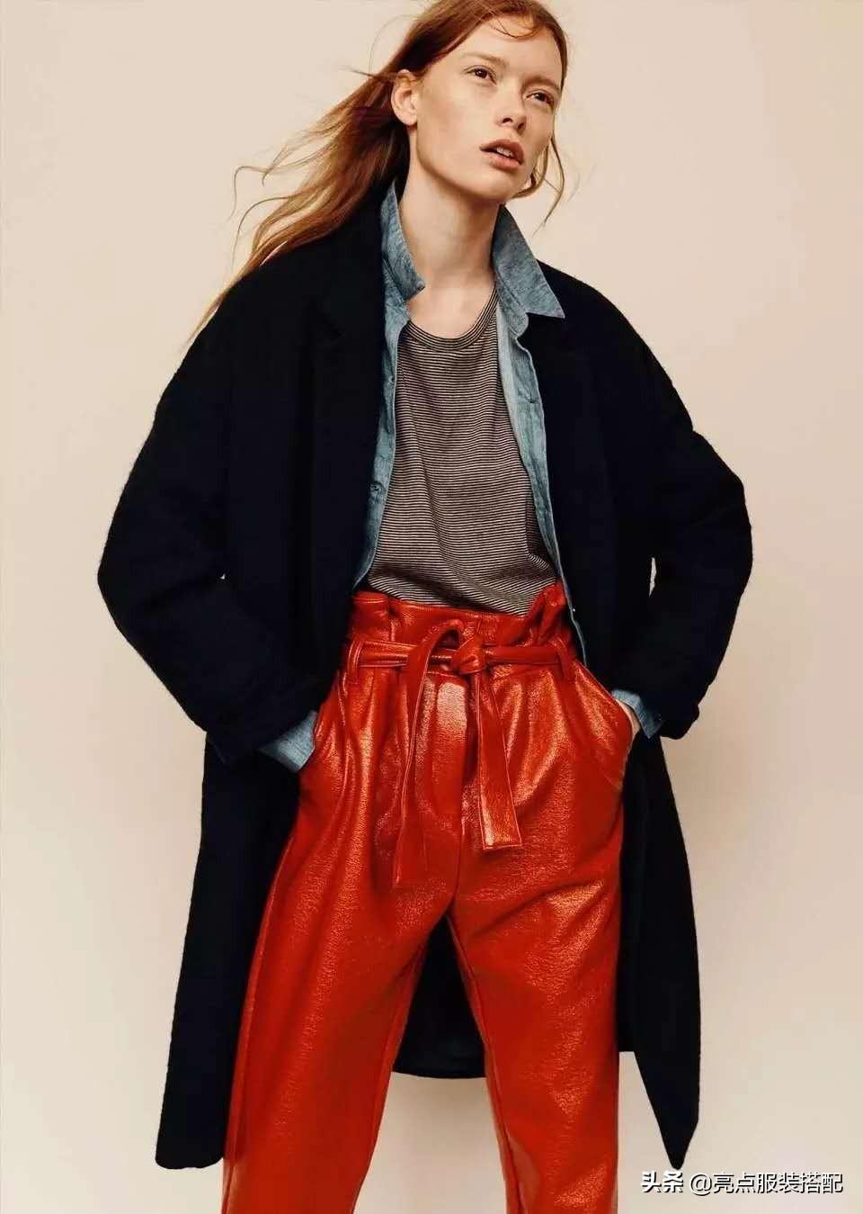 如果你也想穿着皮裤,但是又没有模特一样的好身材的话,建议你不要选择紧身款,而是选择不紧绷的皮裤,合体或者阔腿皮裤。亮光或者哑光都是可以的,关键要看搭配了。如果你的上衣外套都很平庸,没有什么色彩或者亮点,那就选择哑光的。如果你上衣很潮、妆容发型都不错,那就可以选择亮光的。