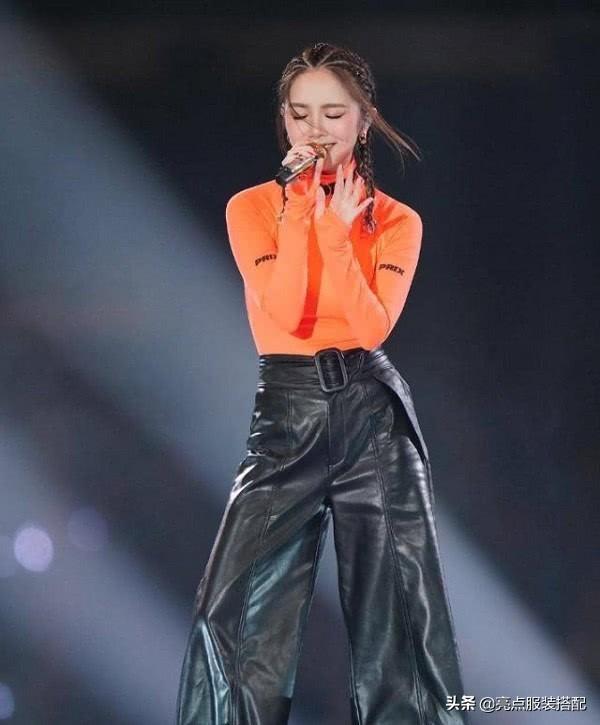 邓紫棋好像非常喜欢穿着皮裤,确实,皮裤又简洁又百搭,很容易搭配舞台造型的各种上衣,而且很利落,方便自己在舞台上的动作和跳舞。