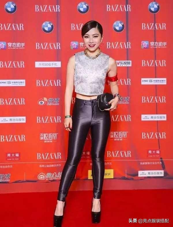 但是因为她自身身材的缘故(腿不够细长、不直),她无论穿着亮光还是哑光的皮裤,总是给我们一种很显胖很显矮的效果,整个人因为身材的缘故,时尚度也大大削弱了。很多粉丝一边说着她唱歌好听,一边嘲笑着她的造型难看。