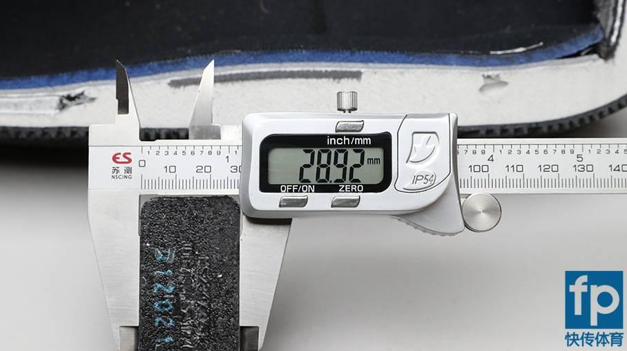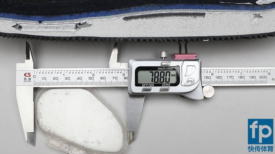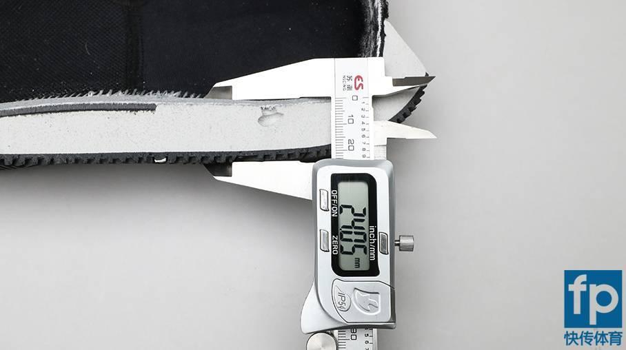 US 9/42.5码后掌中底+外底厚约24.05毫米,前后落差约为8.19毫米