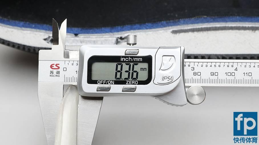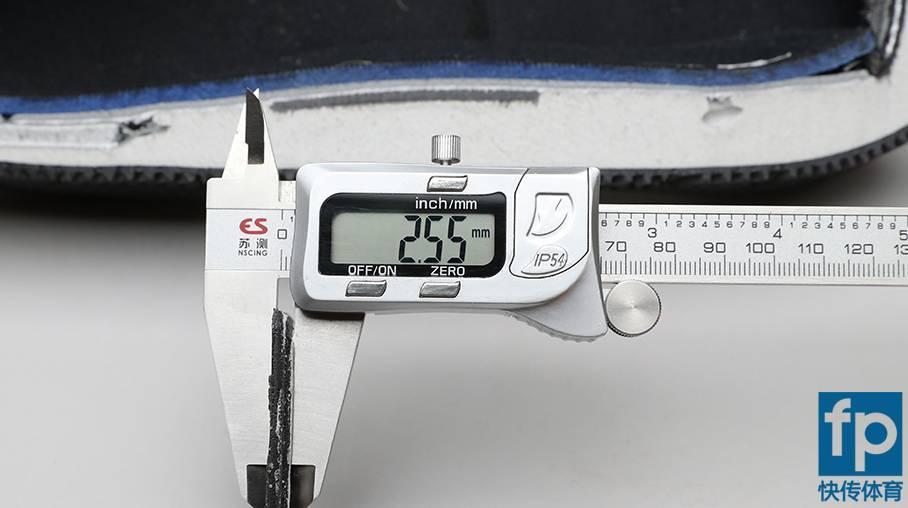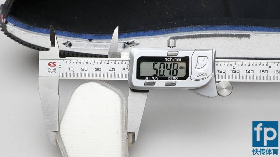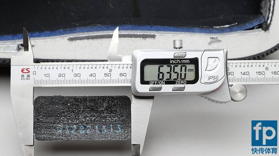 气垫失压状态下,US 9/42.5码前掌中底+外底厚约15.86毫米