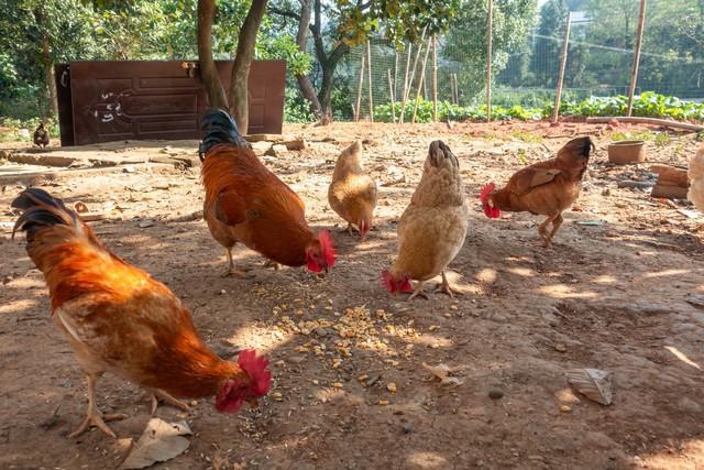 土鸡通常在农村家庭单位饲养,数量不多,自由生长,不定时无规律喂一些剩饭,喂一些玉米谷物。平时主要靠鸡仔子们自己寻找食物,有时为了保护农作物,菜园子,还会关几天,以免糟蹋作物嫩苗。因此,会有一些营养不够往往生长非常缓慢。