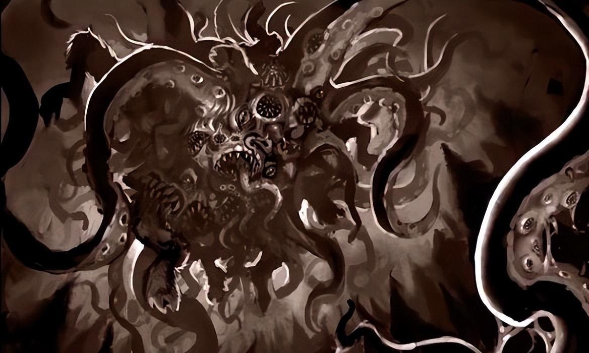 而至于什么黑云般的巨大肉块,许多触手,滴着黏液的大嘴、山羊的蹄子啦、黑山羊幼崽啦那是后人创造的。