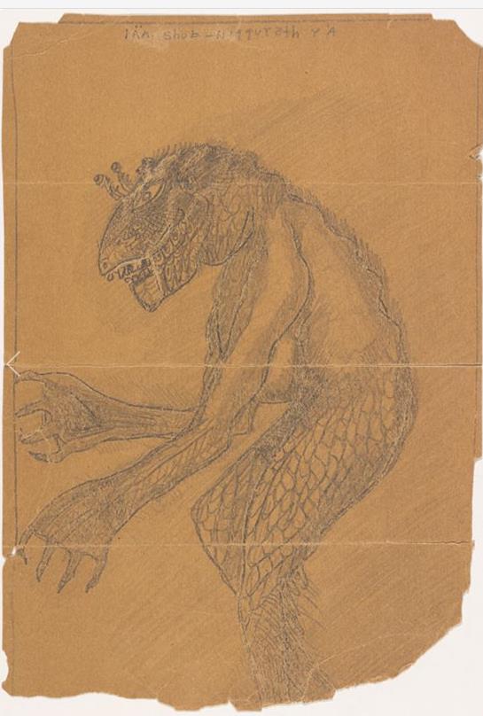 正是有如此棒的素材,所以我的私人收藏正逐渐变成了一种令人惊奇的噩梦主题相簿。我真是太羡慕你了——因为你早年对于传统设计的系统学习,故而你总能对这些无名之物的生动形象和血肉丰满的想象上把握得很好。戴尔非常欣赏你的画作,他在怪诞风格这方面也算是佼佼者。 他有没有向你展示过他的作品? 我必须要说单论怪诞想象力,你毋庸置疑是领先者。”——洛夫克拉夫特致罗伯特·布洛克,1933 年 12 月。