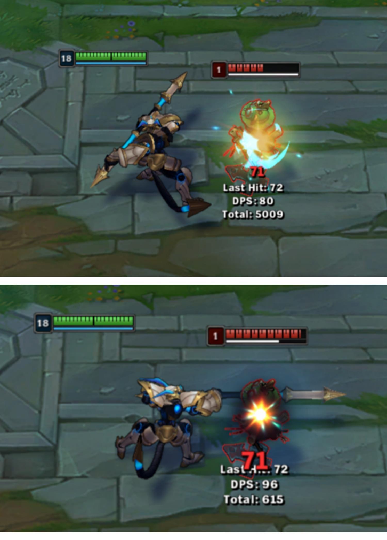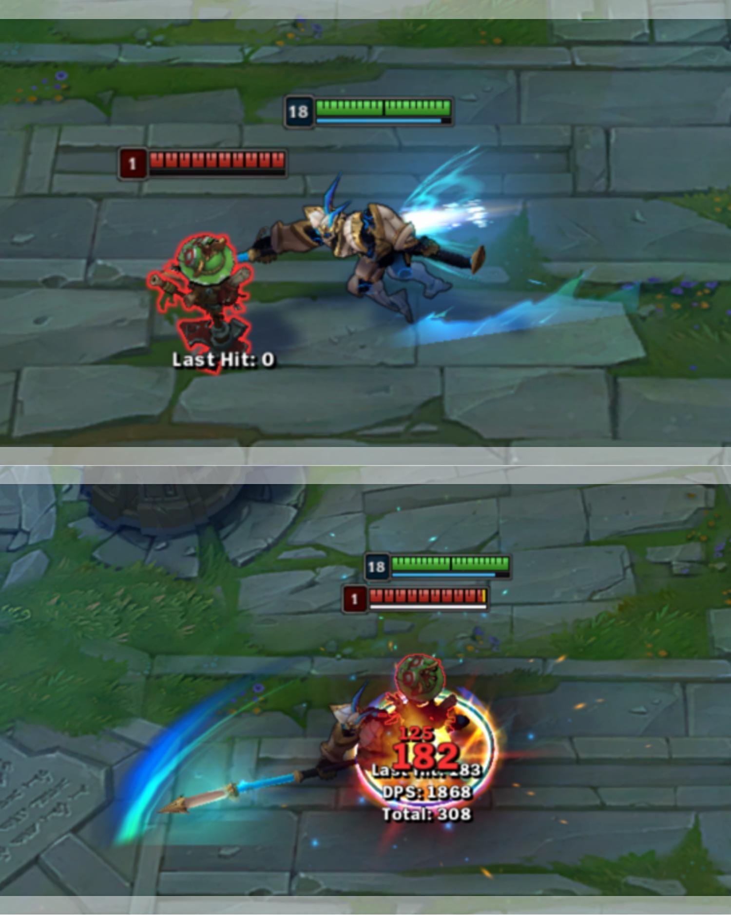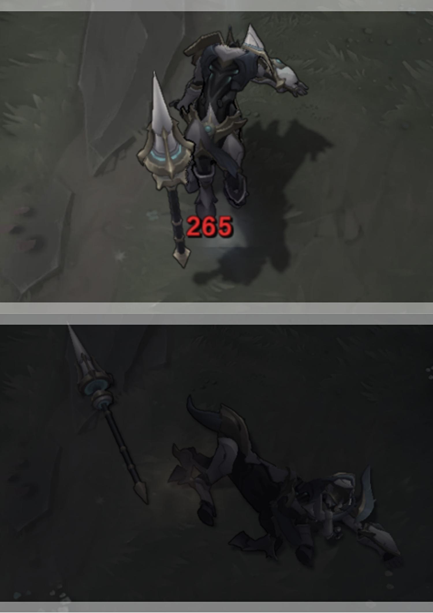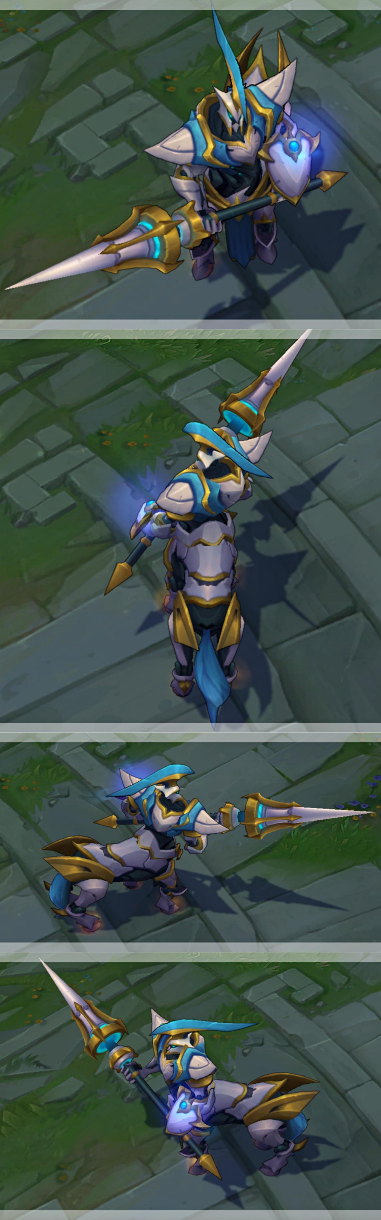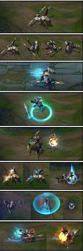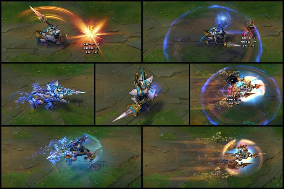 制作黑暗枪骑皮肤时的探索,保留并应用到制作光明枪骑皮肤的制作上。尽管只是一些原始的技术优势,加上努力和创意,我们发现可以在这两种皮肤使用相同的骨架和动画。这腾出了一些额外的时间,制作全新的角色模型,视觉和音频特效,以及崭新的回城动画。让两款款皮肤拥有独特的感觉,即使他们共享同一-主题(以及隐性特征)