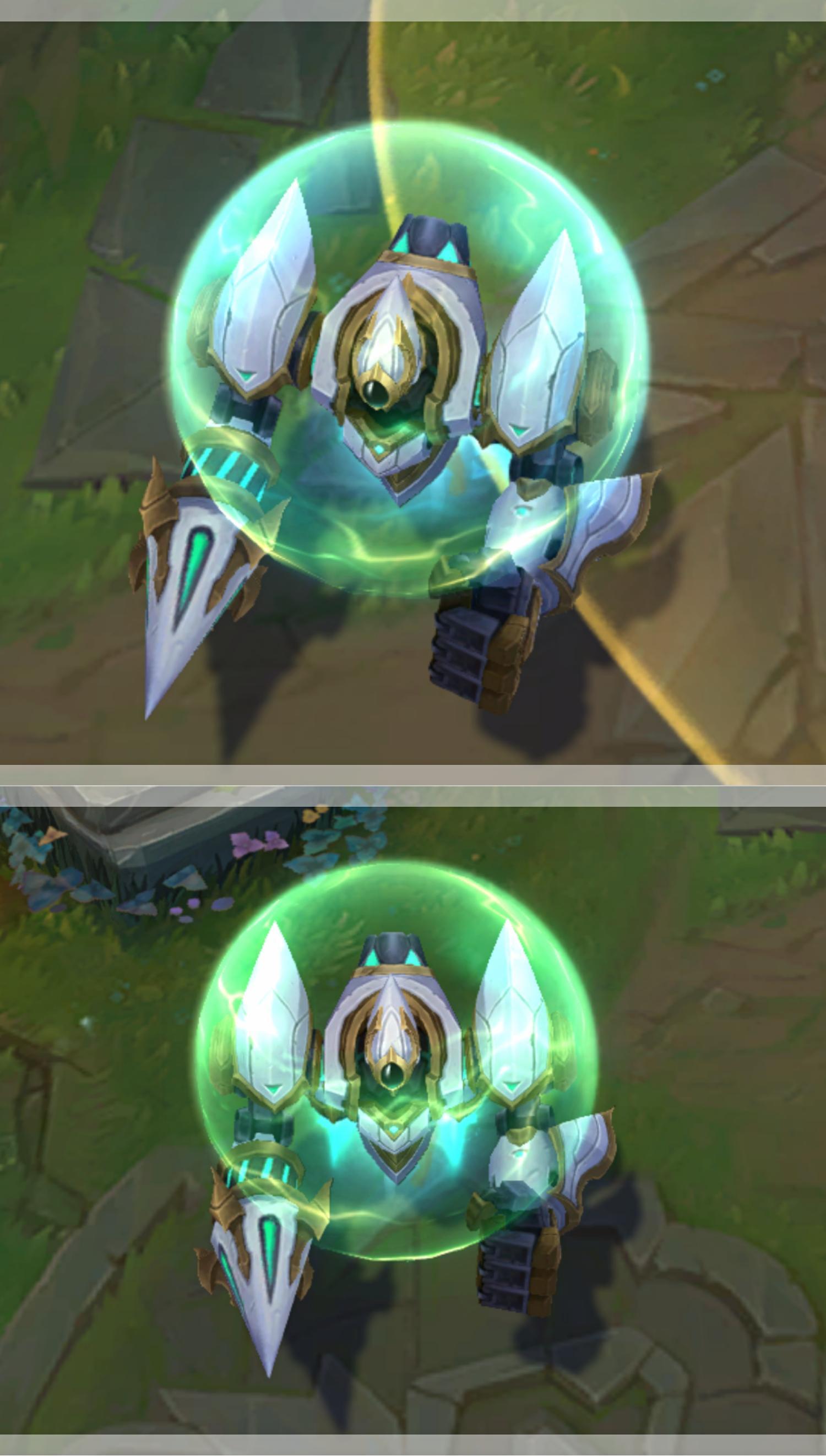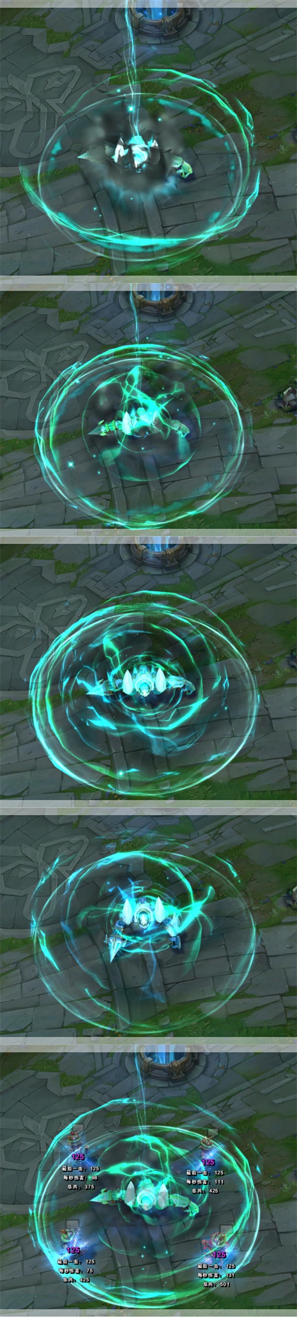 【被动】:触发青绿色的护盾,护盾表面泛着黄绿色的闪电。