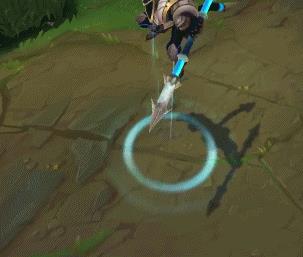 【W】:左手抬起,发出蓝光,向四周汲取能量。当能回血是,圈内由纯蓝转变为蓝圈带金雾。两种情况下都有少量蓝色粒子。