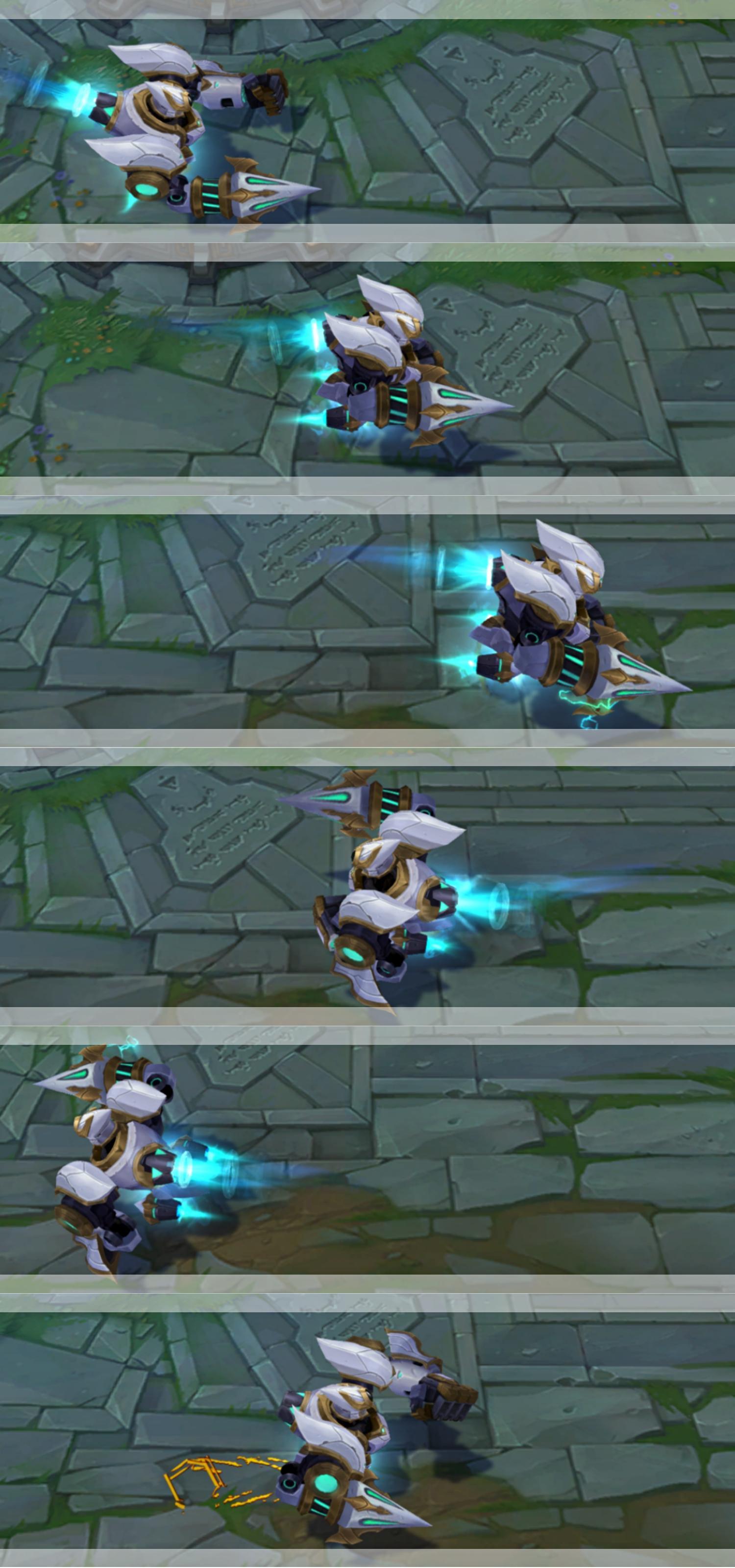 【W】:W技能开启,移动的途中,带钩子那只手会加速旋转,到最高转速时会出现青绿色电光,非常细节。