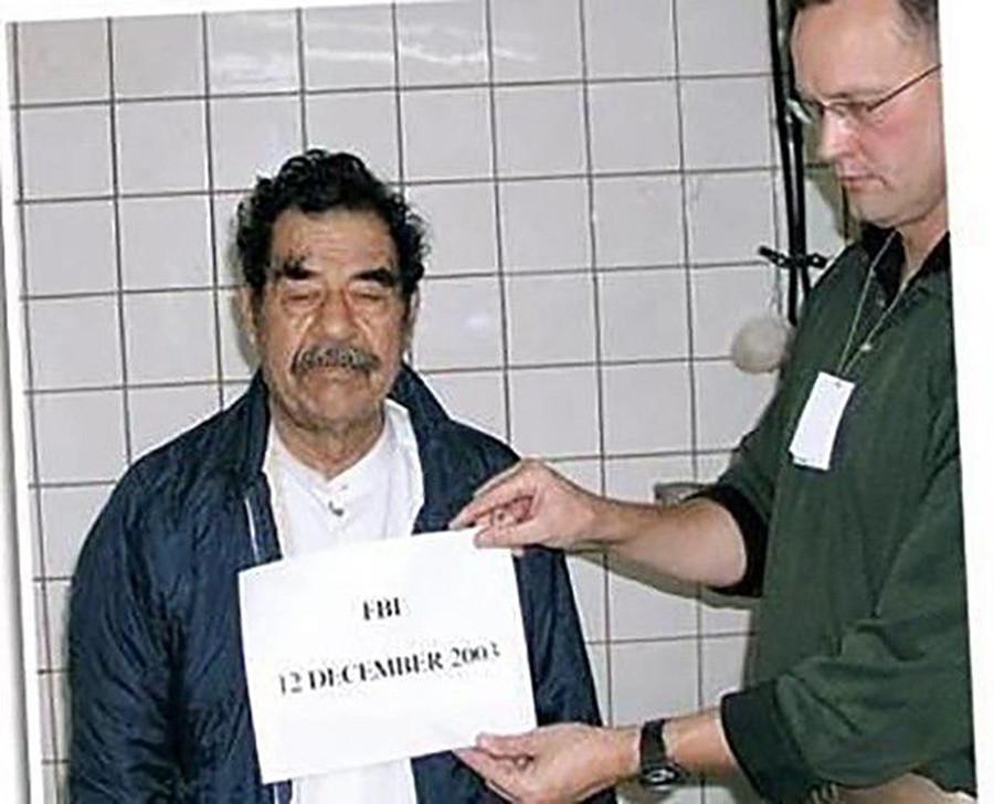 2003年12月14日,萨达姆在提克里特附近被美军发现并逮捕,萨达姆就此成为了一个阶下囚。