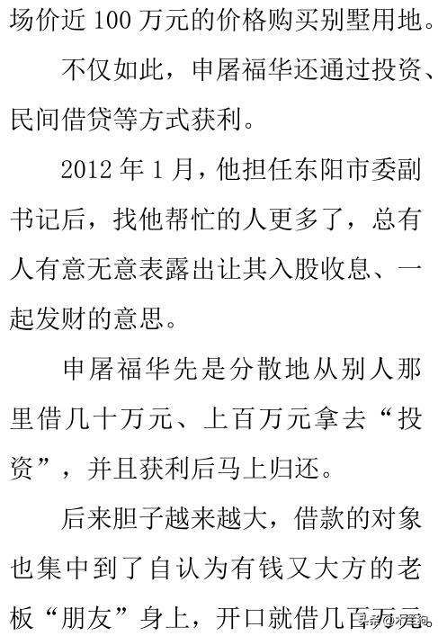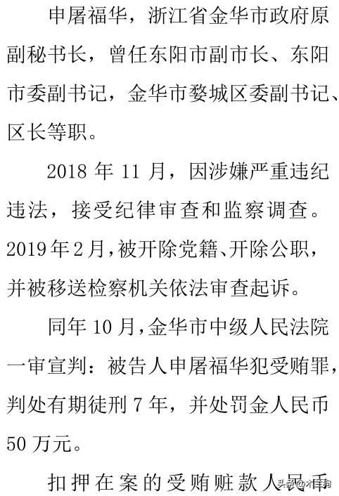 原浙江省金华市副秘书长、东阳市副市长、东阳市副书记、金华市婺城区副书记、区长申屠福华的贪腐经历印证了一句话:常在河边走,哪能不湿鞋?
