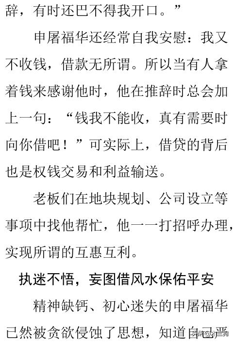 申屠福华知道自己做的事情是违纪违规的,经不起任何调查,所以他心里也是慌得一比,为此,他到各地去烧香拜佛、求签转运,祈求佛能保佑自己平安,也在心理上得到一些安慰。