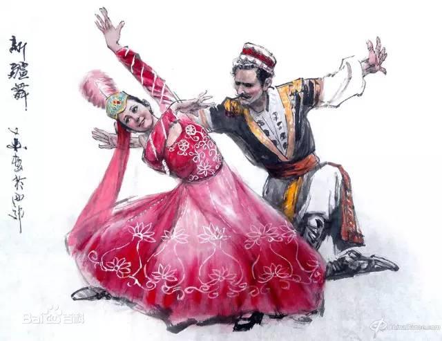 9、跪膝旋转步:右旋转时跪右膝,扬右手;左手反夹在左膝关节上,身体后扬(是否抖肩?女方在什么情况下做此动作?扬右手时手有什么动作?)可自选,右旋转时则相反。