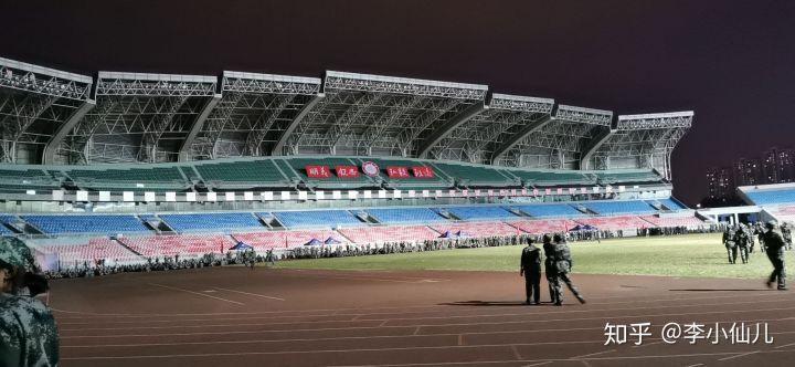 说说操场,操场篮球场足球场都在我们二区,所以一区的同学们上个体育课就很辛苦了,毕竟要跑那么远(所以一区的小哥哥很多都配备了电动车哈哈哈)在学校的东南,是临沂大学的体育馆,这是我军训的时候拍的 夜景 还蛮好看