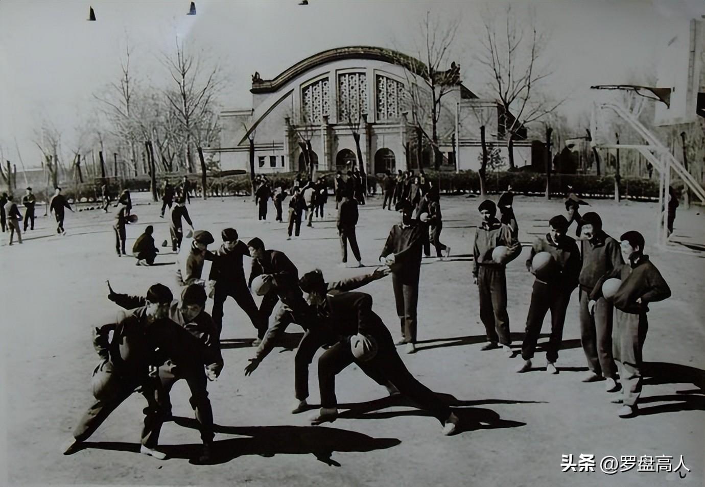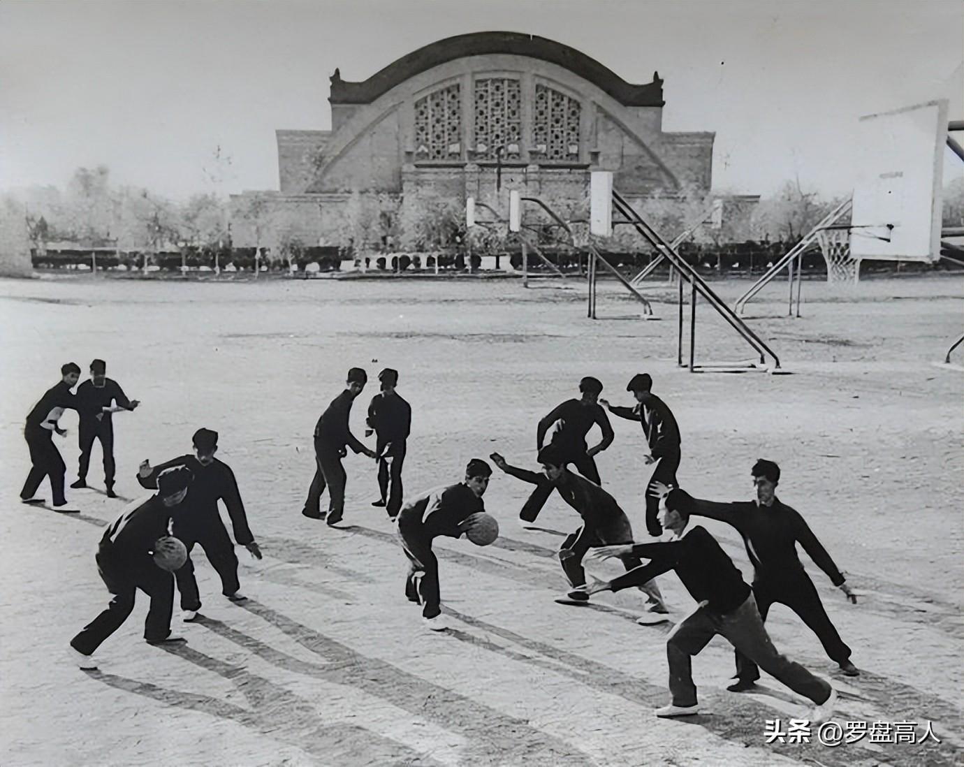 1978年,北京体育学院球类系学生正在进行篮球训练情景