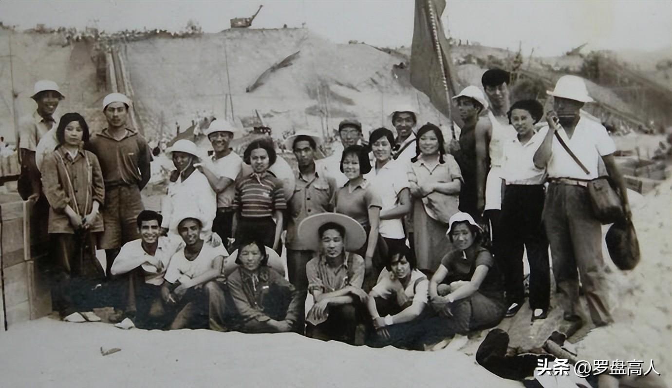 1958年,在北京十三陵水库工地参加劳动的北京体育学院师生留影