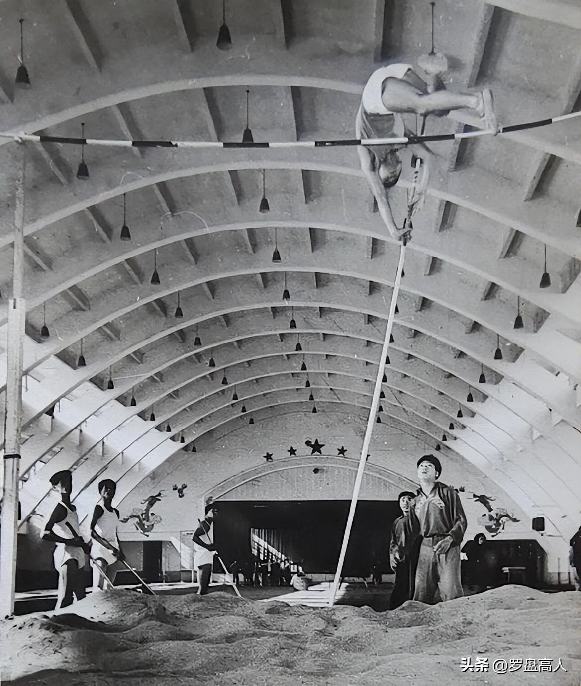 北京体育学院大学生在田径馆内练习撑杆跳高情景