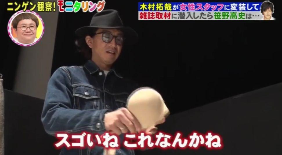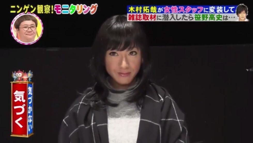 直到他上台拿笹野高史的毛笔画,主持人才惊觉这位美女竟是木村拓哉本人,木下优树菜则是诧异惊喊:「该不会一直都坐在那里吧。」他才回答:「对,我一直都在。」主持人还是不断怀疑「你一直都在?」