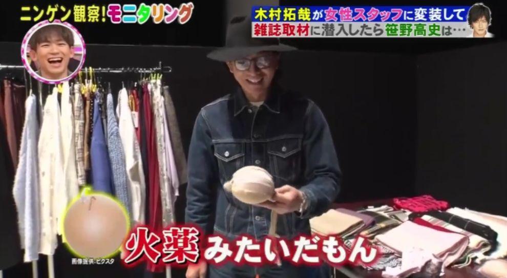 虽然是火遍日本二十多年的巨星,但木村拓哉为了节目的恶搞效果,完全的放下偶像包袱,这次则是女装亮相!力求达到更像,连胸部细节也不能马虎,让大神塞内衣。