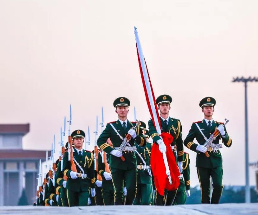 为了纪念这不平凡的一天,在天安门广场举行盛大的仪式,中国最帅男团迈着整齐的步伐,护送着国旗迎面而来。