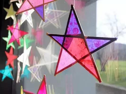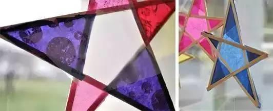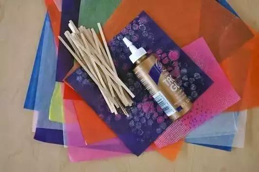 准备细雪糕棍、各类半透明的彩纸、胶水就可以。