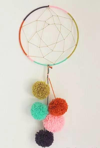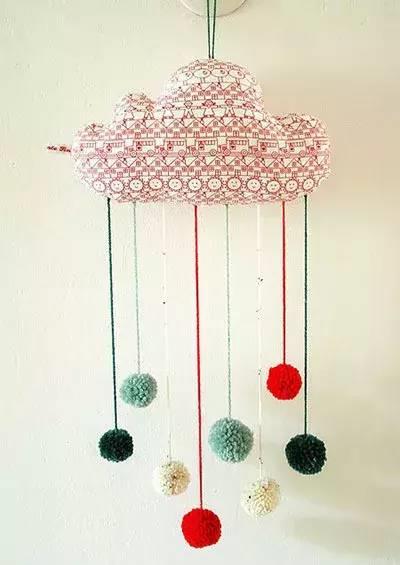 毛线球可是冬天升暖的必备环创材料,各色各样的小圆球,挂起来当吊饰或挂饰,既漂亮又给人暖烘烘的感觉。