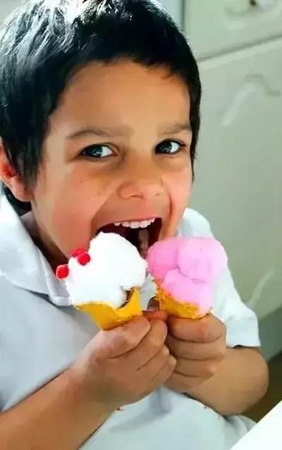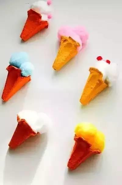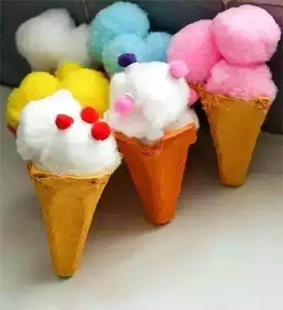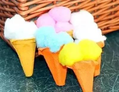 冰激凌可以用毛线球来制作。下面的冰淇淋托很明显,是蛋托做成的。