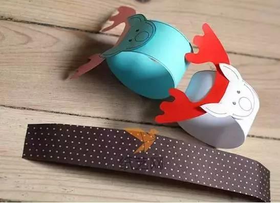 然后将两个麋鹿纸环用另一种颜色的纸环固定好。