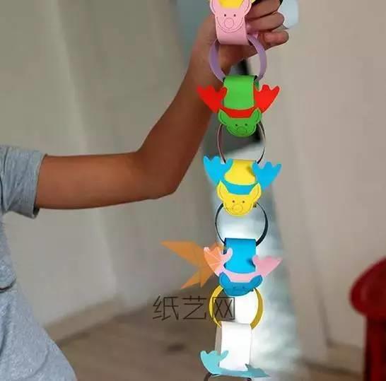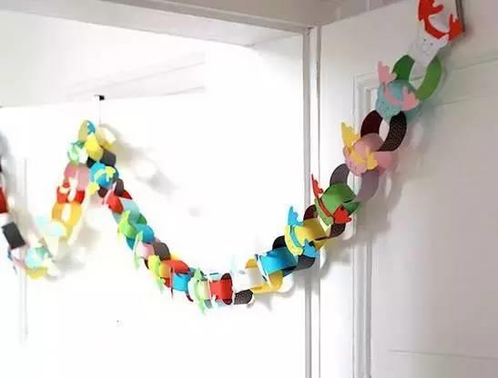 把这些纸环都用另外的纸环固定在一起,就是很漂亮的麋鹿装饰拉花啦