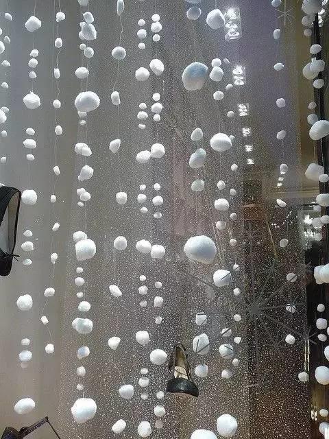 孩子最爱的活动是什么?当然是打雪仗。想把雪球挂起来?这不是梦,制作这样的效果只需要白色的棉花球和线。棉花球做成大小不一,然后错落有致的穿起来,挂在天花板上慢慢欣赏吧。