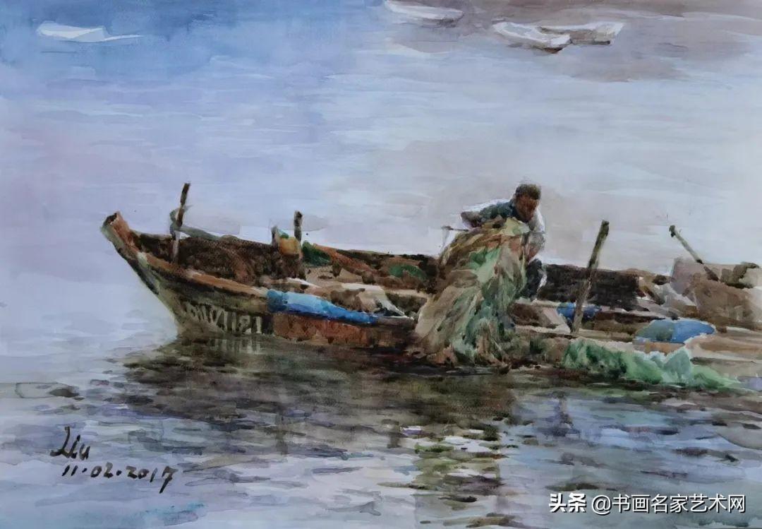 ▲水彩《渔》尺寸:53X38cm