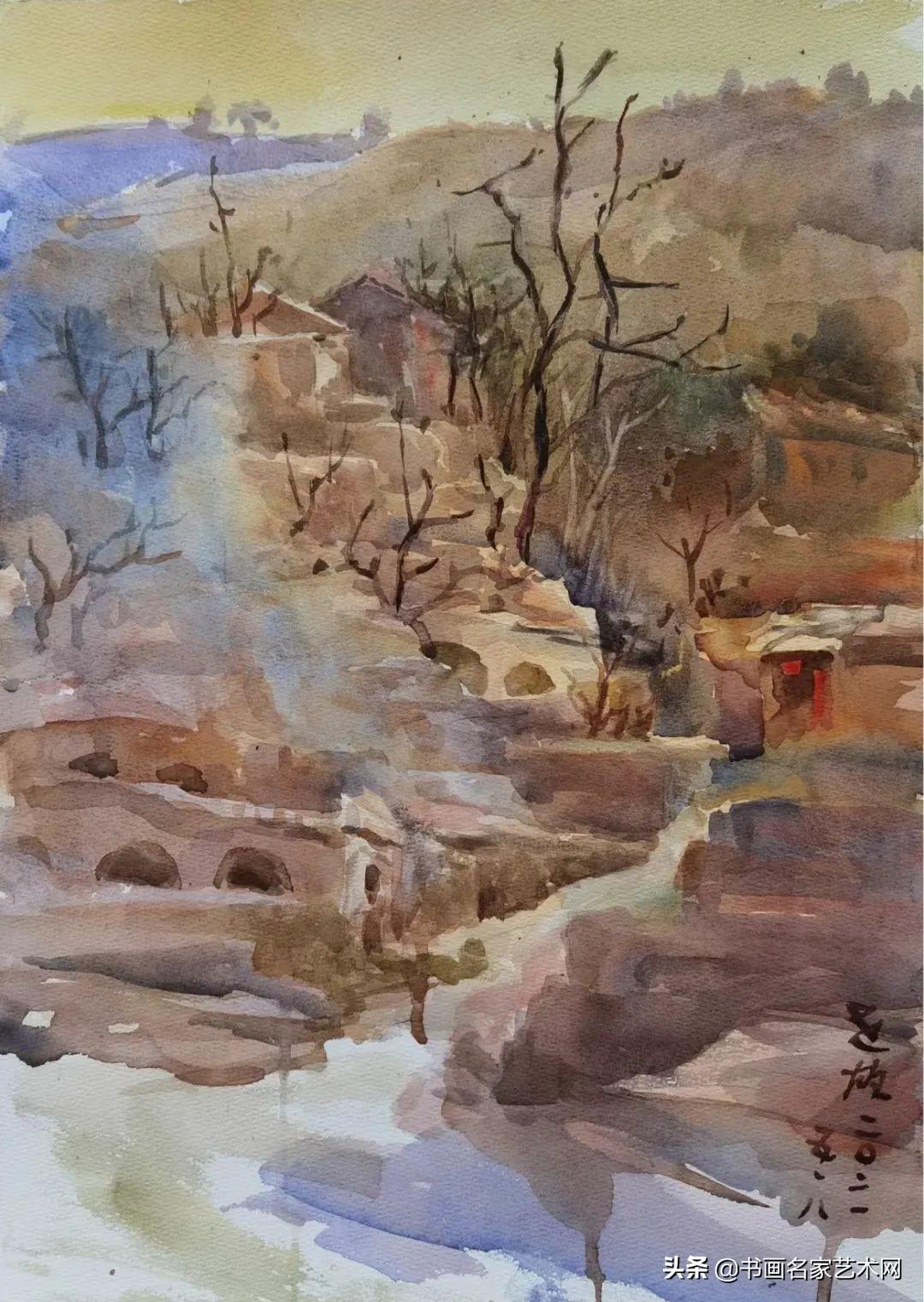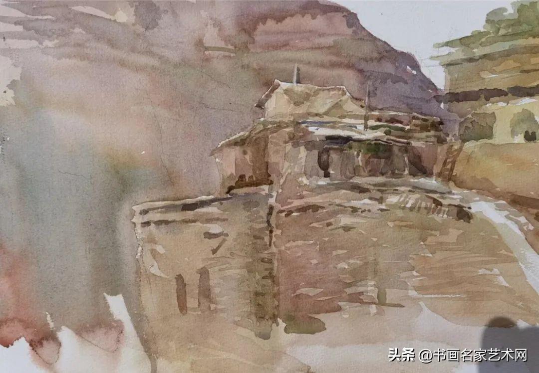 ▲水彩《黄土高坡》尺寸:38X26cm