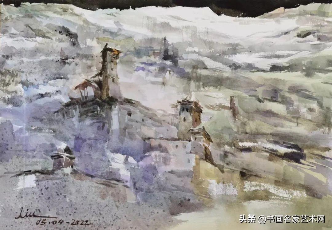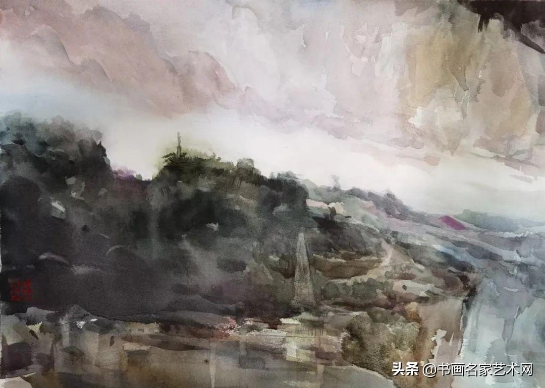 ▲水彩《晨雾》尺寸:53X38cm