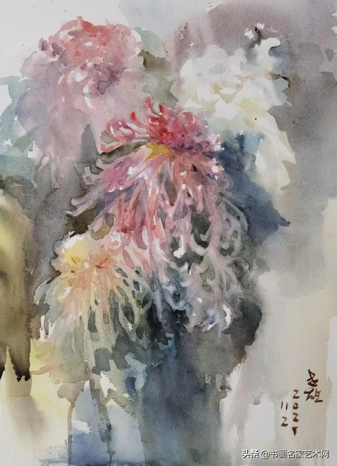 ▲水彩《怒放》尺寸:53X38cm