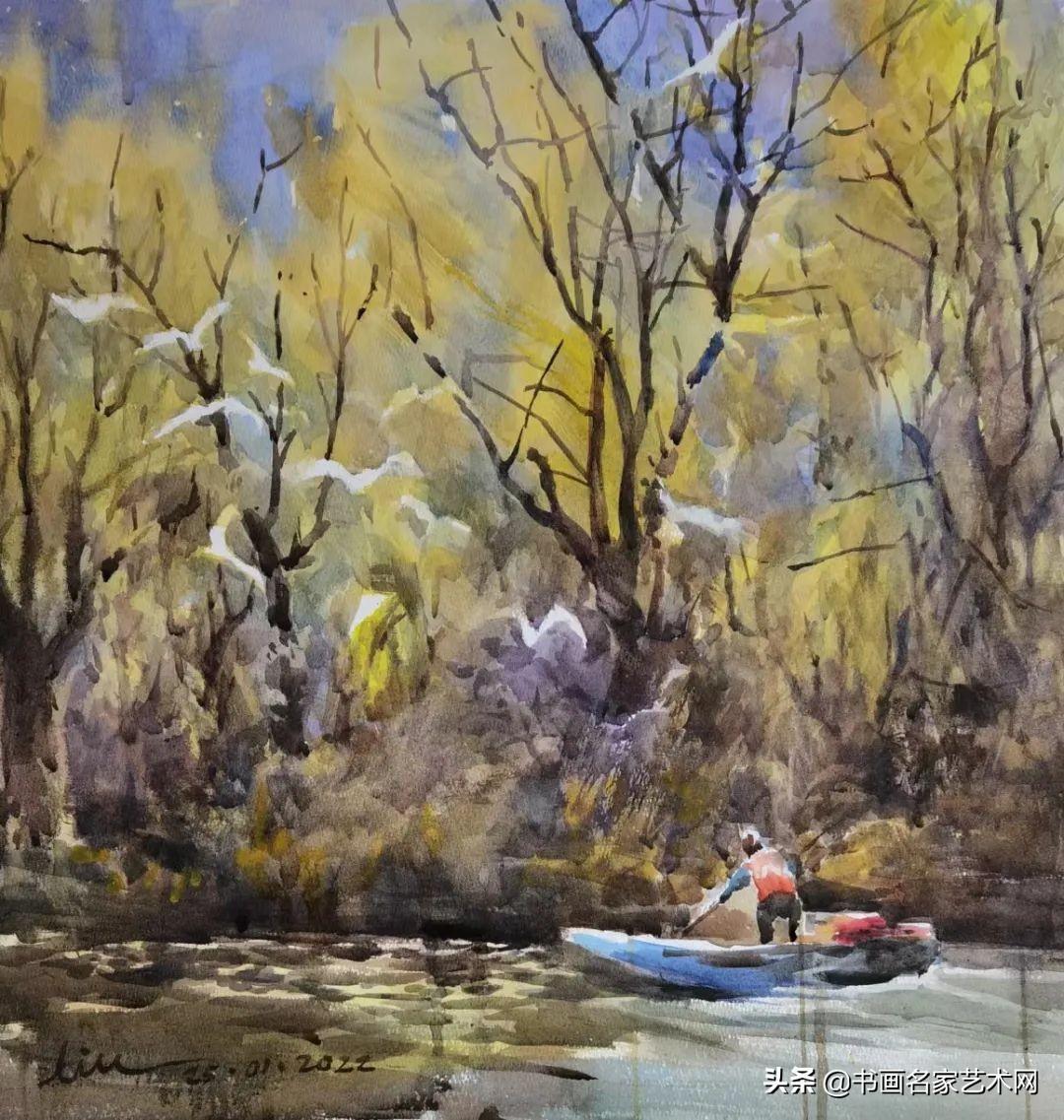 ▲水彩《初冬》尺寸:54X50cm