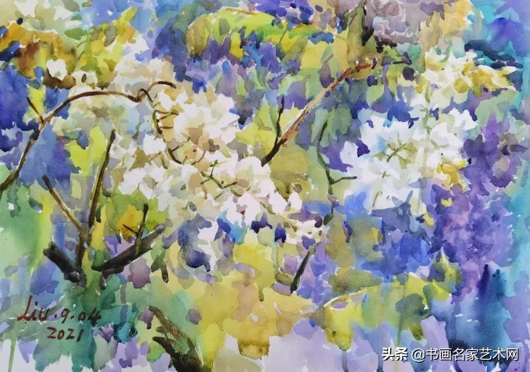 ▲水彩《白色的紫藤》尺寸:53X38cm