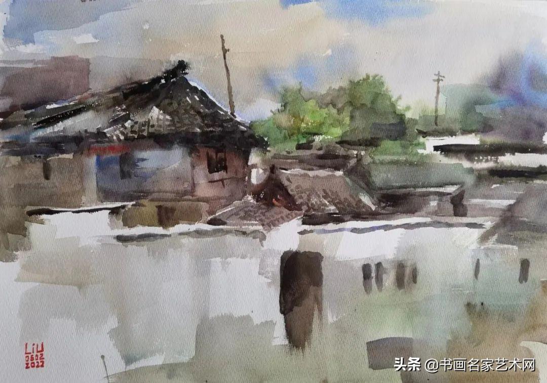 ▲水彩《炊烟》尺寸:58X38cm