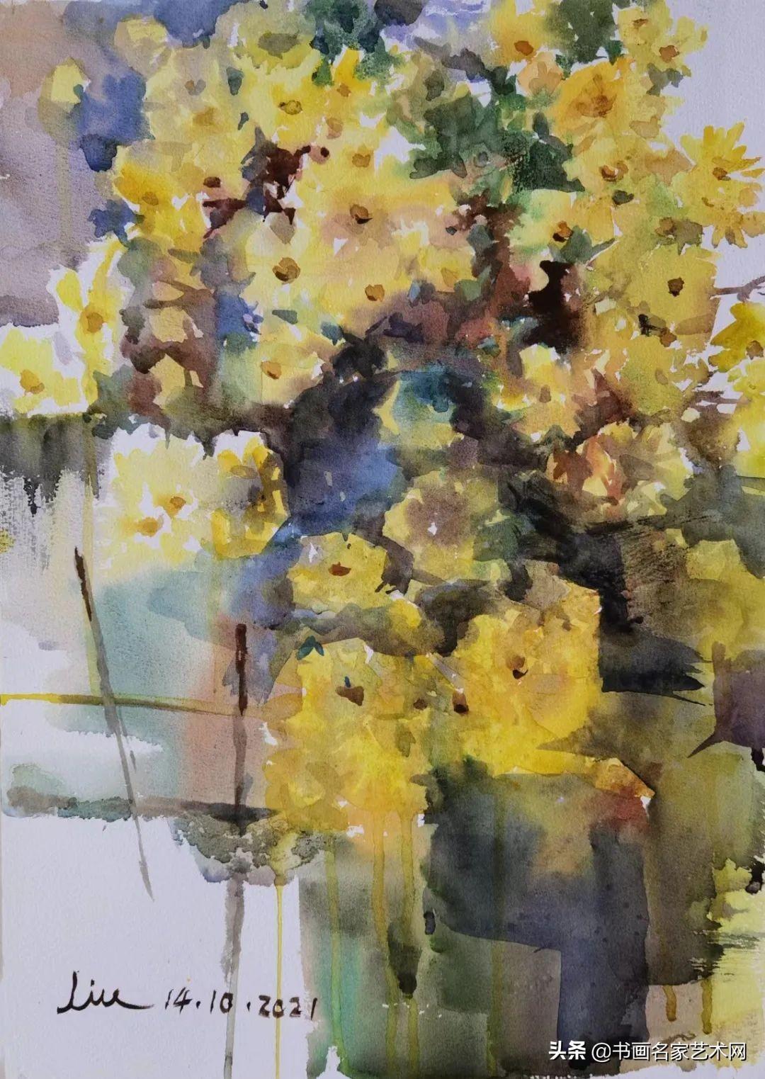 ▲水彩《小黄菊》尺寸:58X38cm