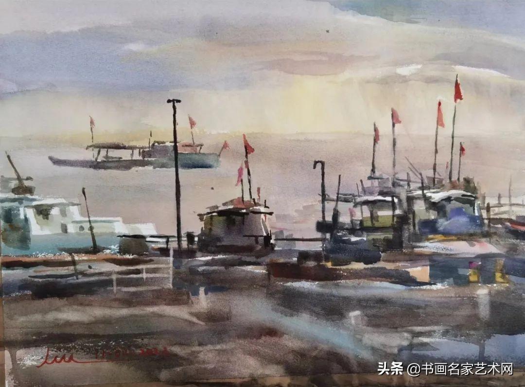 ▲水彩《码头》尺寸:58X38cm