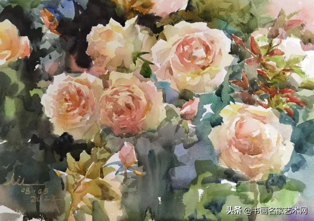 ▲水彩《月季NO.1》尺寸:53X38cm