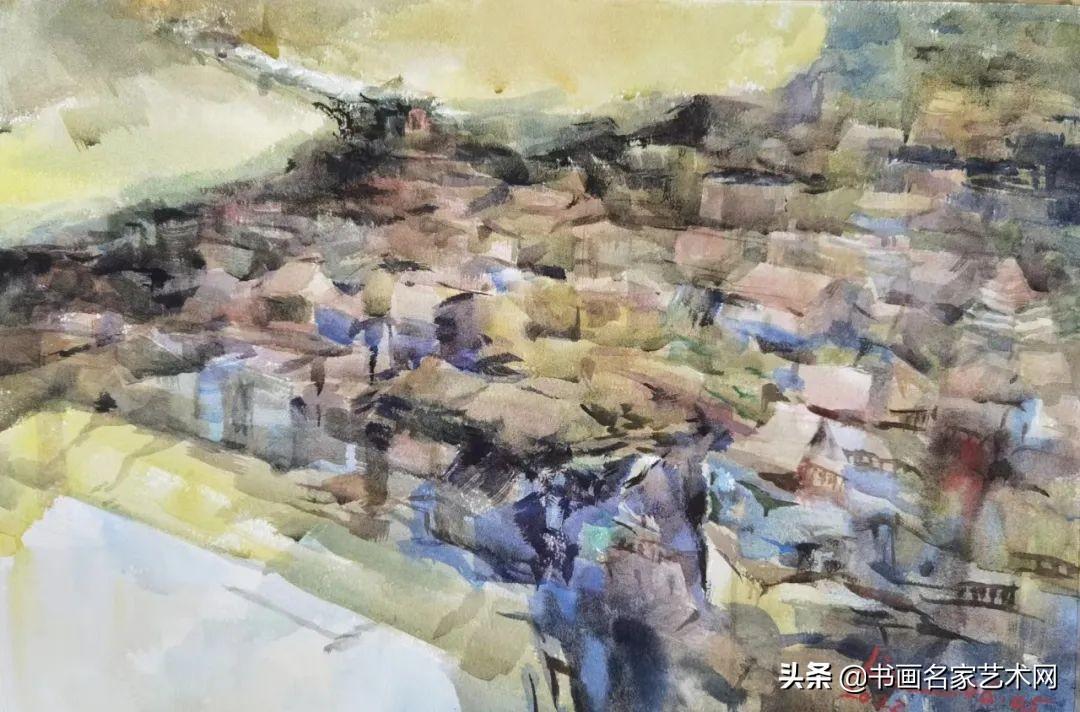 ▲水彩《羌寨》尺寸:53X38cm