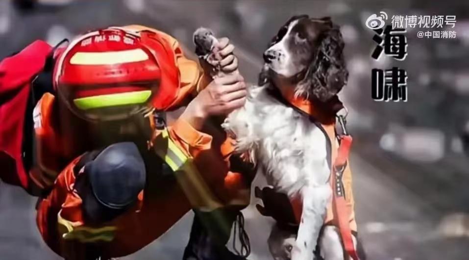 “海啸”是条英国史宾格犬,是一位老兵了,曾在多次搜救任务中立过功。在汶川救援中,天气很炎热,“海啸”伸出舌头散热,结果被废墟中的碎玻璃渣划伤了舌头,流了很多血。2017年,年迈的“海啸”去世,训导员并将它埋葬在野训时最喜欢的地方!