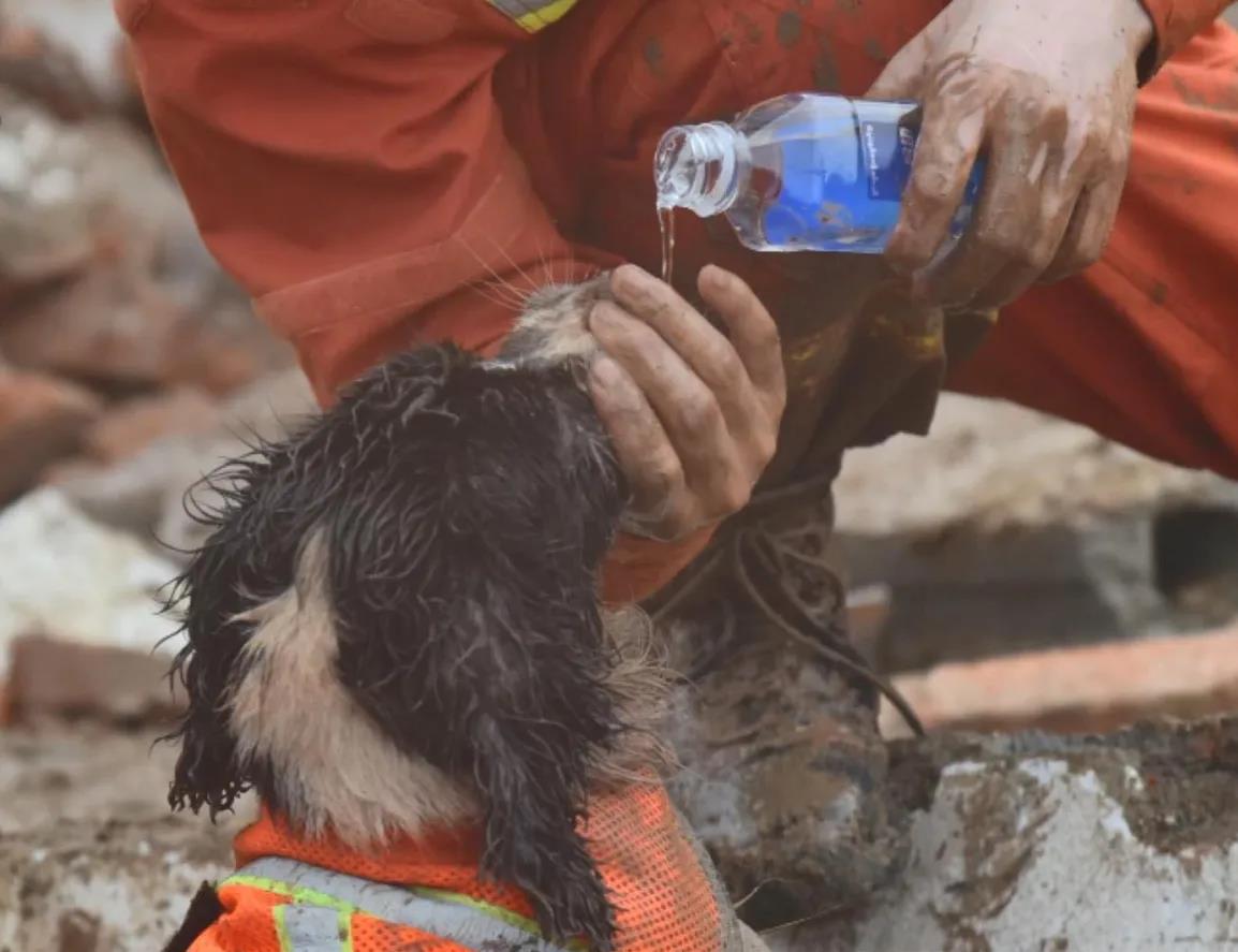 67个小英雄,转战了5个重灾区,搜救了十天十夜,经常被废墟瓦砾划伤,整个爪子血迹斑斑,却没有一丝退缩!