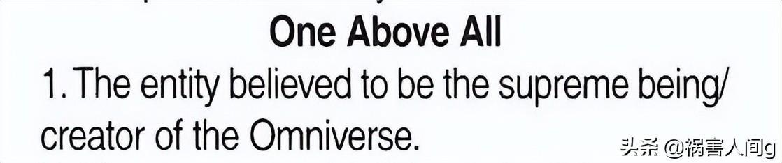OAA全称One Above All,顾名思义他是漫威宇宙的“万物之上”,漫威宇宙的至高存在,在2018年官方手册《漫威宇宙官方手册》#1中,描写OAA是上帝/至高神,是全能宇宙的创造者。