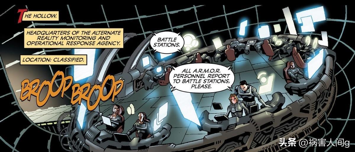 铠甲局的总部被称为“空洞(Hollw)”,是位于地下数英里的掩体,只能通过传送进入。