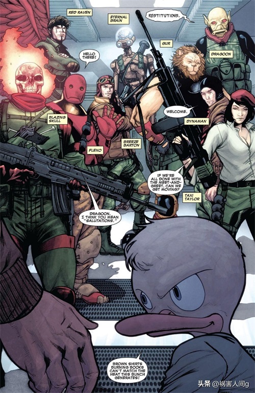 为此,铠甲局命令霍华德鸭组建了一支特工部队前往这个宇宙,阻止纳粹入侵主宇宙的计划。