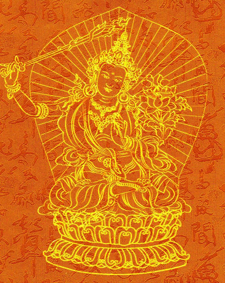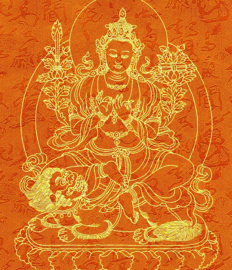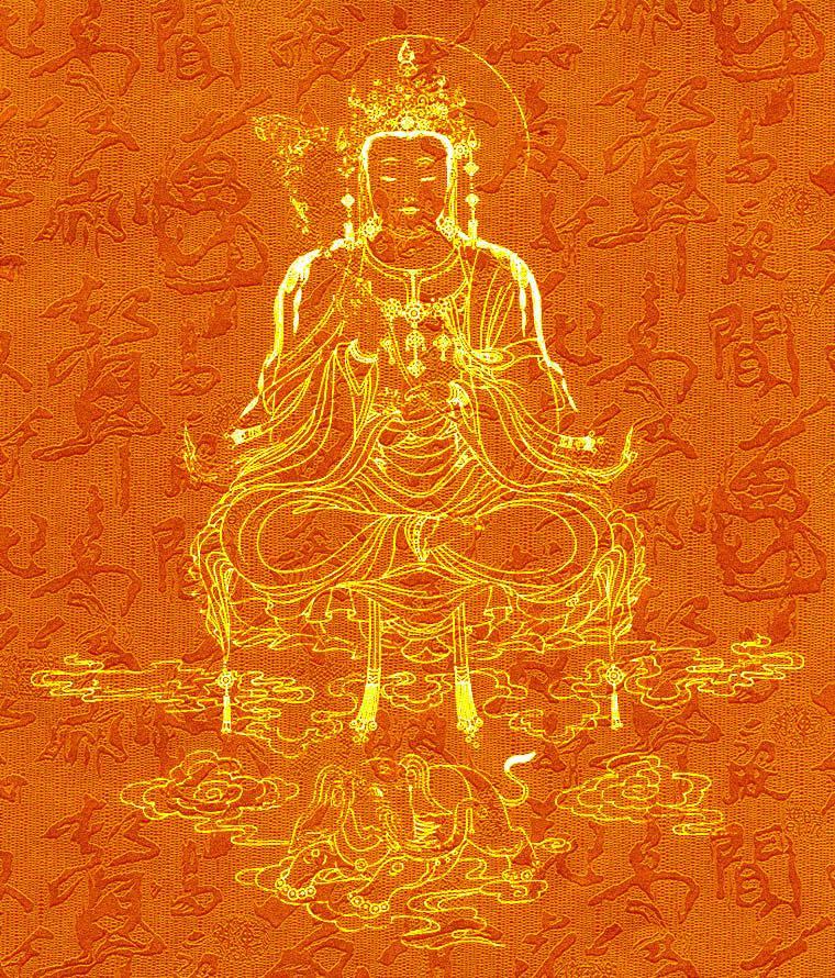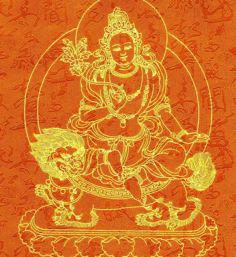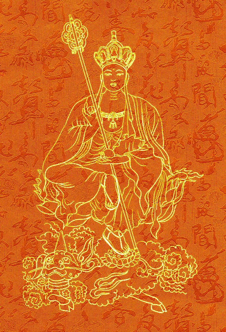 文殊菩萨:生于印度舍卫国,后跟释迦牟尼佛出家,常随侍释尊左右,帮助释尊弘法。“文殊”是妙的意思,“师利”是德、吉祥之意。密宗称之为吉祥金刚、般若金刚。文殊菩萨司理智慧,与普贤菩萨相对。